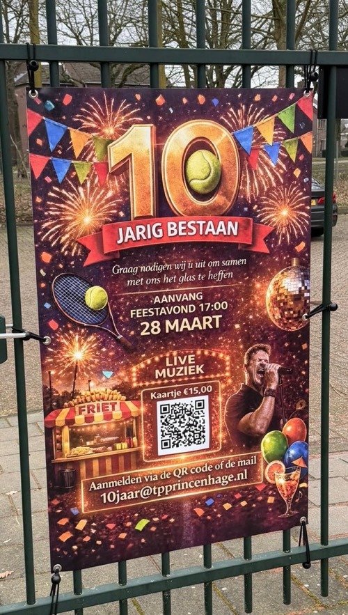 Tennispark Princenhage bestaat dit jaar 10 jaar. Een bijzonder moment voor de vereniging, die in de afgelopen tien jaar is uitgegroeid tot een bruisende ontmoetingsplek voor jong en oud uit Princenhage en omgeving. Met competities, toernooien, jeugdactiviteiten en gezellige clubmomenten staat het park bekend om zowel sportiviteit als een sterk verenigingsgevoel.