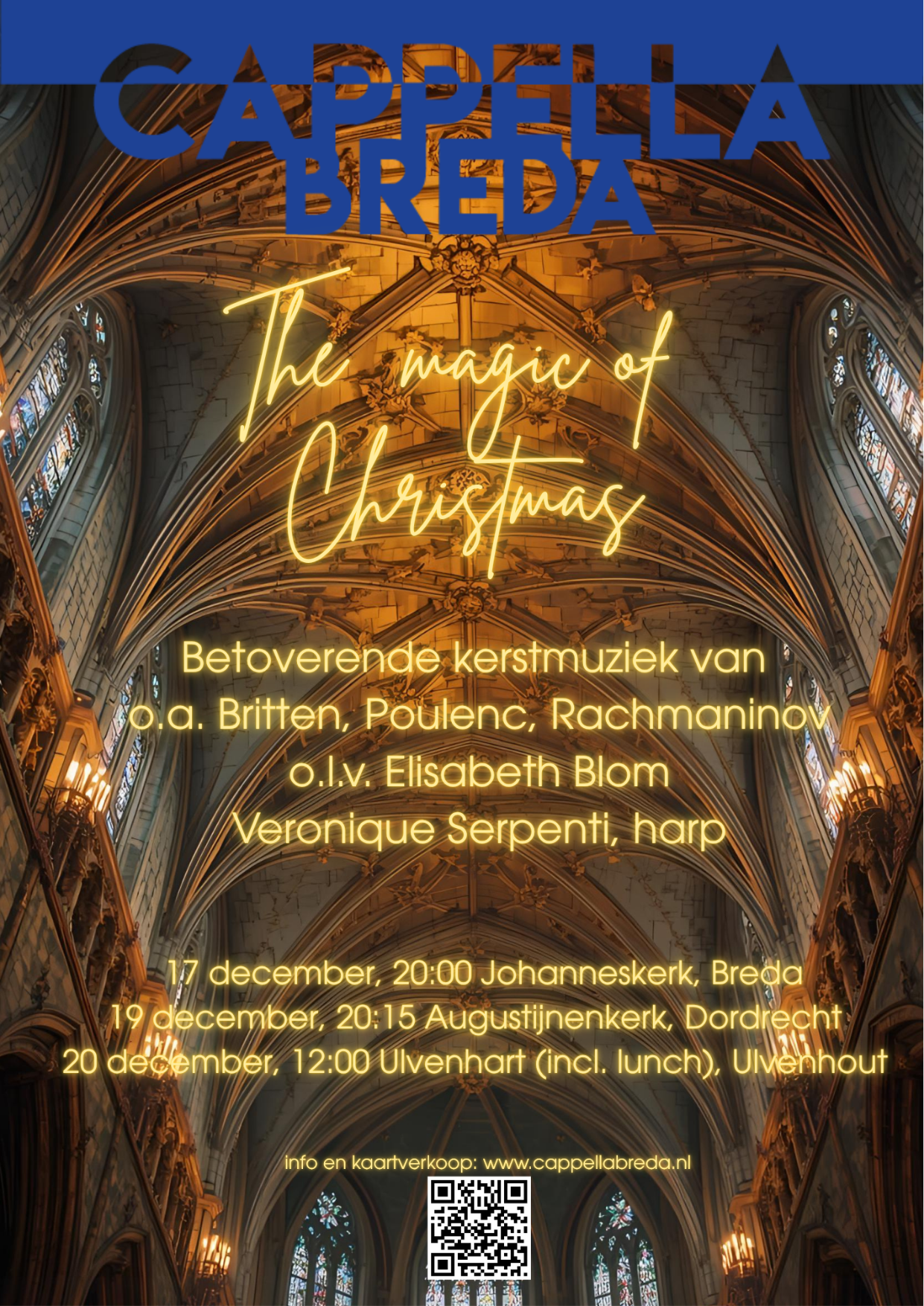 Kom luisteren op woensdag 17 december om 20:00, Johanneskerk, Princenhage. Kaarten voor dit concert kunt u bestellen via de website www.cappellabreda.nl. In de pauze schenken wij warme wijn.