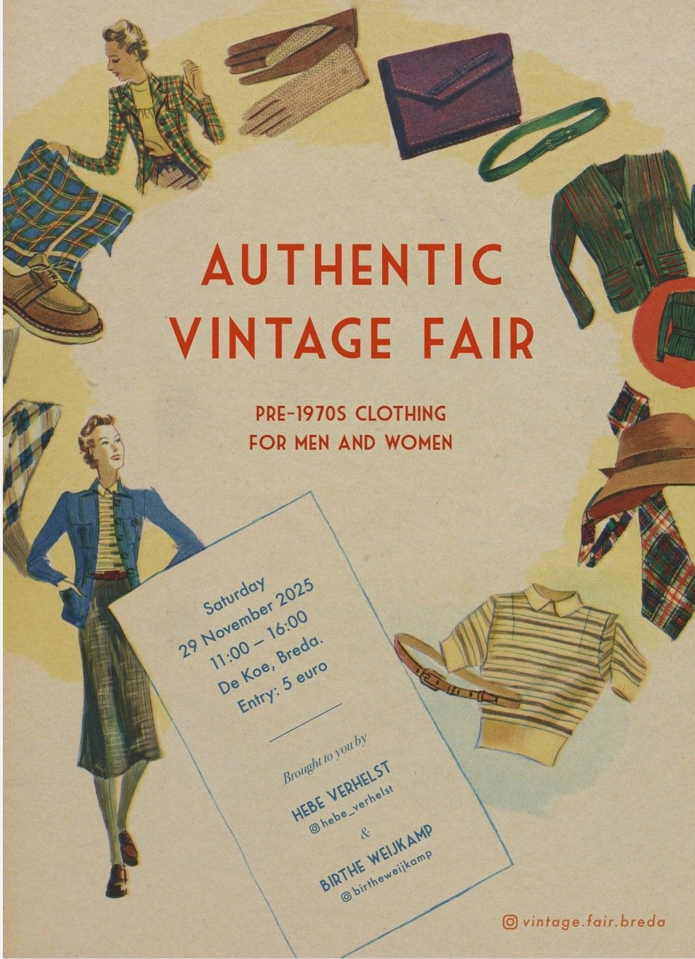 Op zaterdagmiddag 29 november 2025 vindt in Sociaal Cultureel Centrum De Koe in Princenhage de vijfde editie van de Authentic Vintage Fair Breda plaats. Deze vintage kledingbeurs staat bekend om haar bijzondere en authentieke collectie kleding, accessoires en mode-items uit de periode 1900 tot 1960. Voor liefhebbers van historische mode, verzamelaars en nieuwsgierige bezoekers is dit dé plek om originele stukken te ontdekken die je nergens anders vindt.