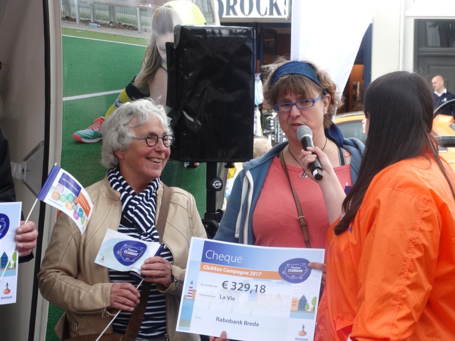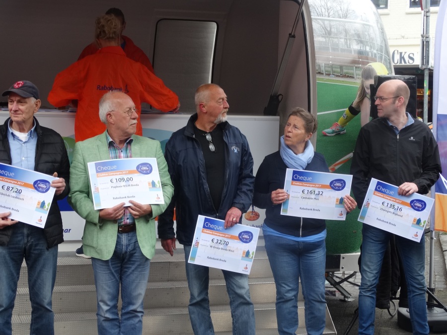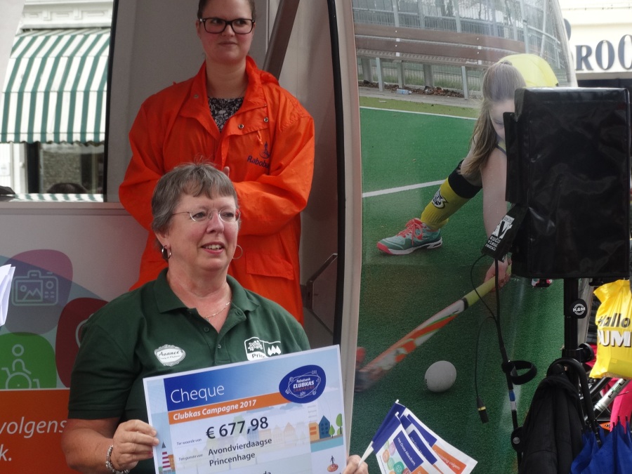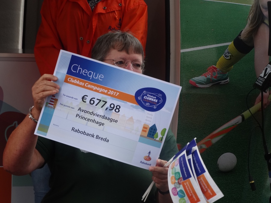 Zaterdagmiddag 20 mei om half 1 stopte de ‘Rabobank Clubkas Roadshow’ op de Haagsemarkt om alle deelnemende clubs uit Princenhage hun cheque te overhandigen.