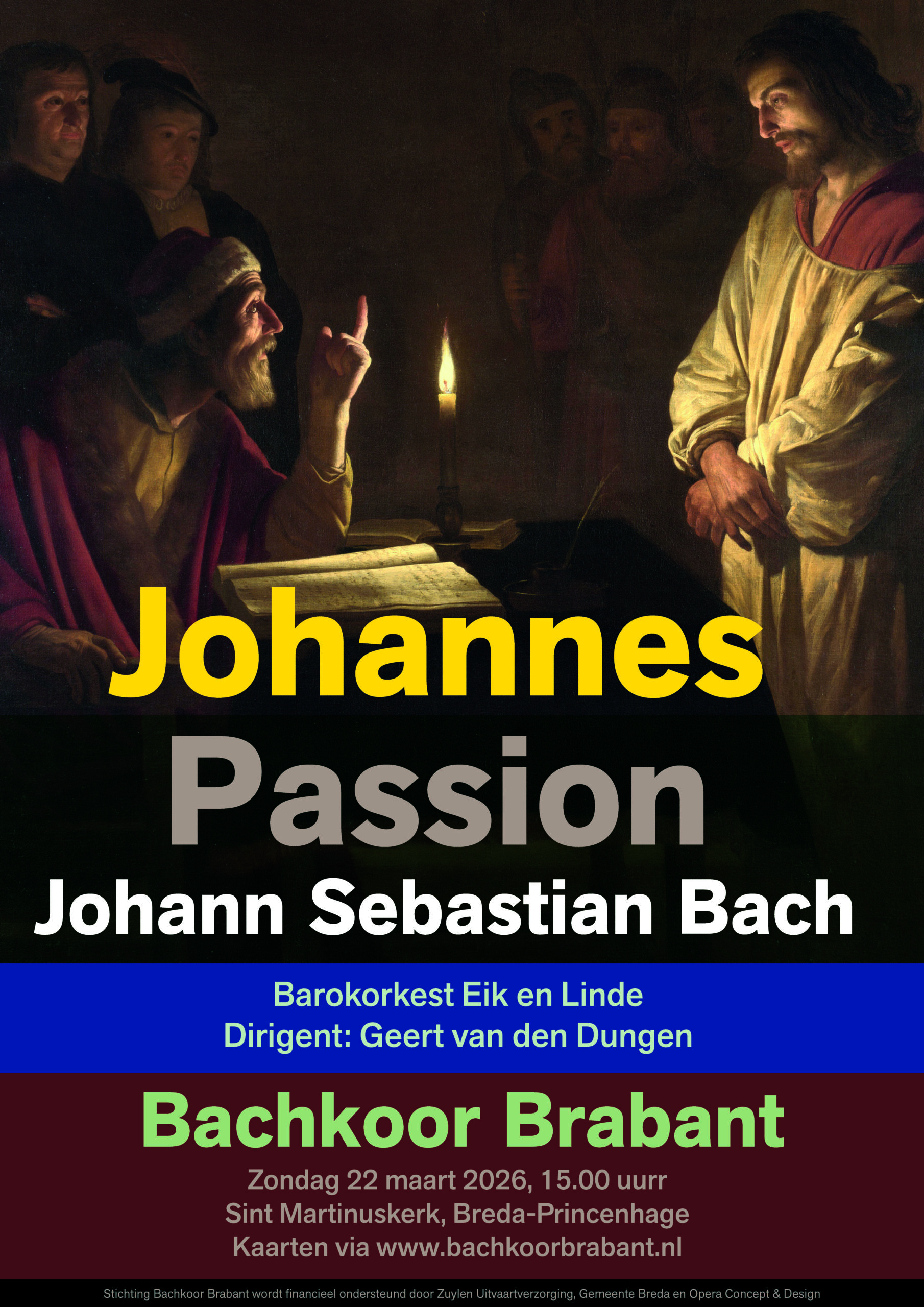 Op zondag 22 maart om 15.00 uur, vindt in de Martinuskerk in Breda-Princenhage een barokuitvoering plaats van de Johannes Passion van Johann Sebastian Bach. Het Bachkoor Brabant onder leiding van Geert van den Dungen werkt in dit concert samen met het professionele barokorkest Eik en Linde dat op historische instrumenten, of kopieën daarvan, speelt.