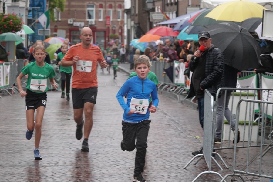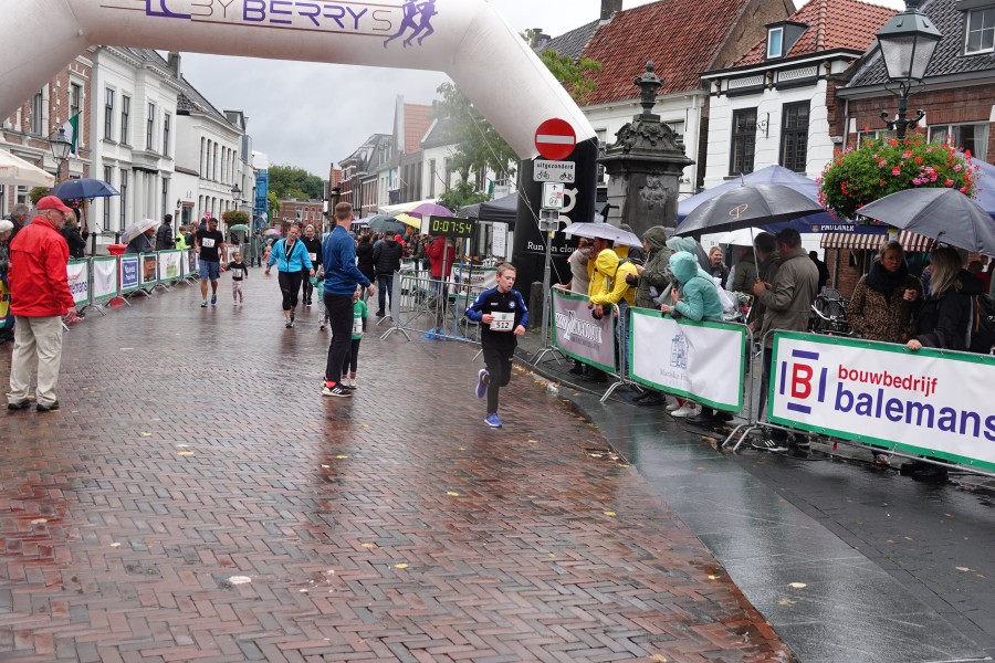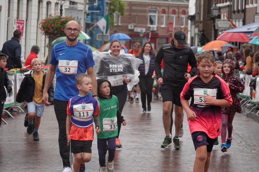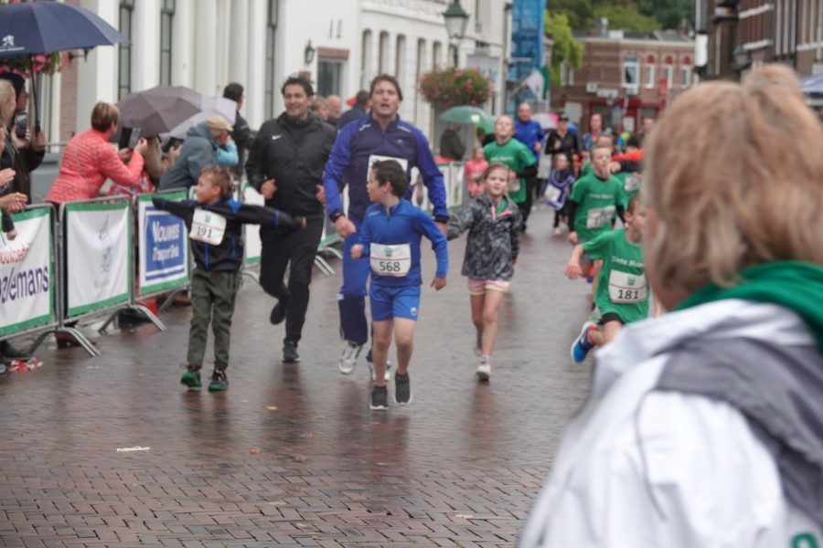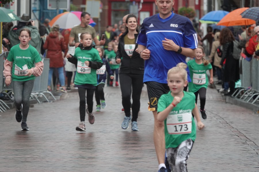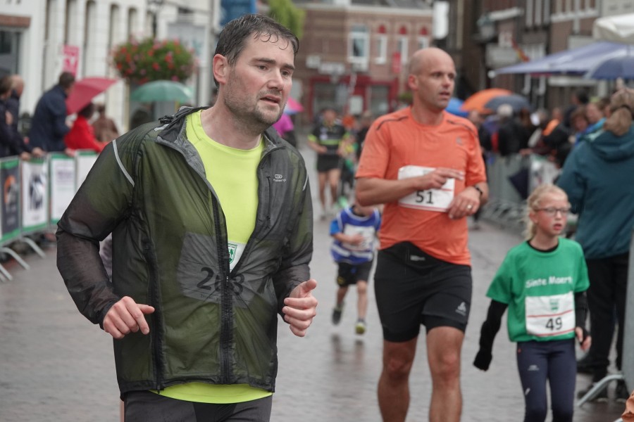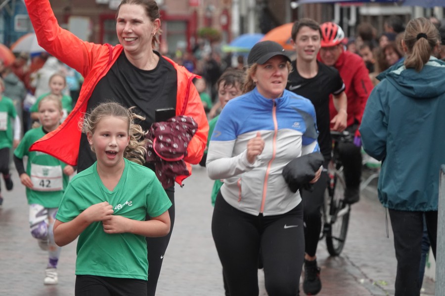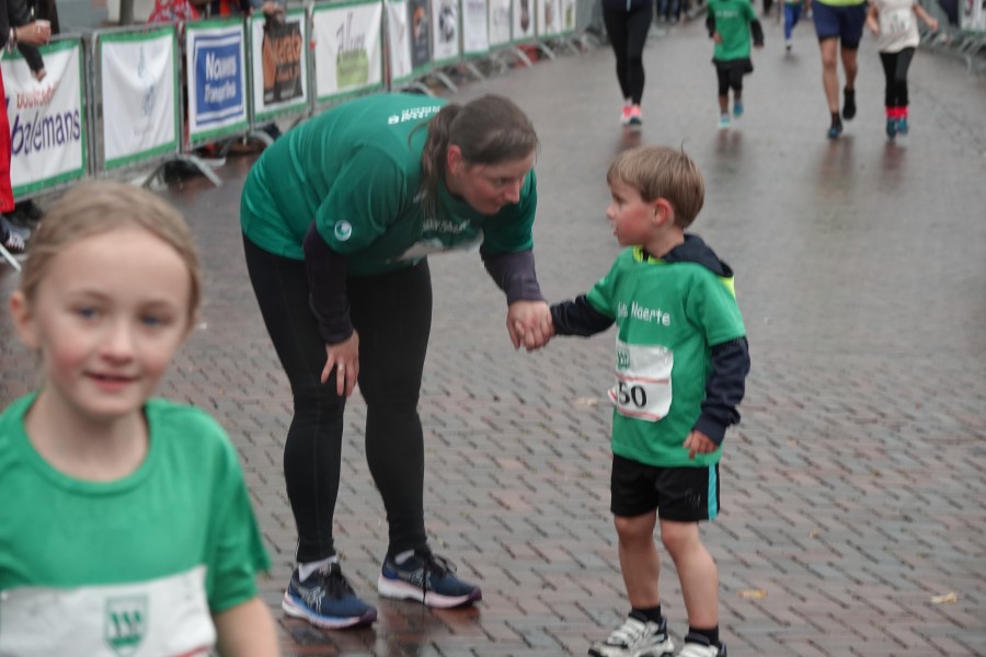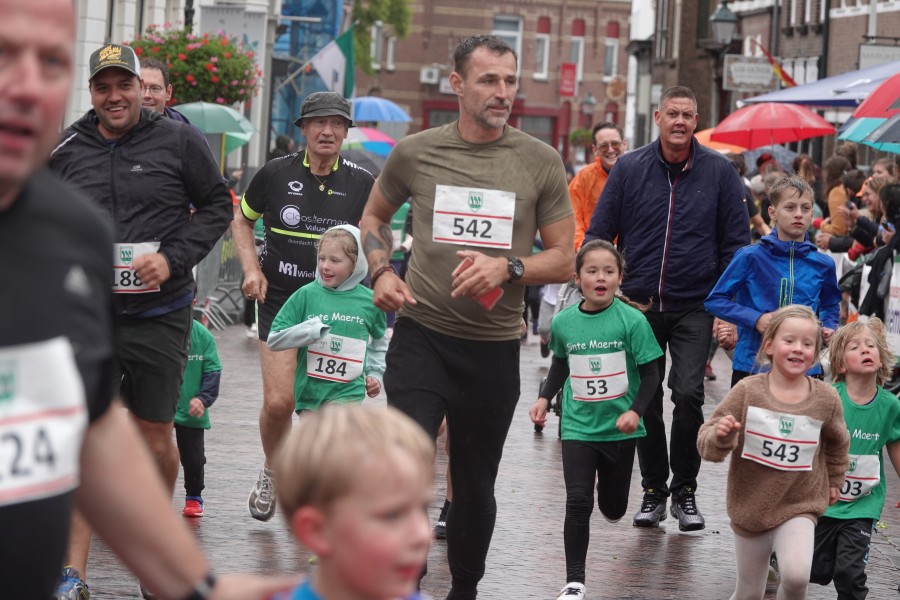 Onder droge omstandigheden begonnen de eerste lopers, alleen de snelsten kwamen droog over, maar de regen kon de pret niet drukken. Menig record sneuvelde en voor anderen was het gewoon een overwinning op jezelf. Zo had ieder zijn eigen motivatie om deel te nemen. Vervolgens ging de tien kilometer van start onder regenachtige omstandigheden. Gelukkig viel de regen mee toen de familieloop startte. Na een goede warming-up ging ook die van start, de ene liep een ronde de fanatiekeling onder ons liepen er zelfs drie. Gelukkig was iedereen voor de grote stortbui binnen.