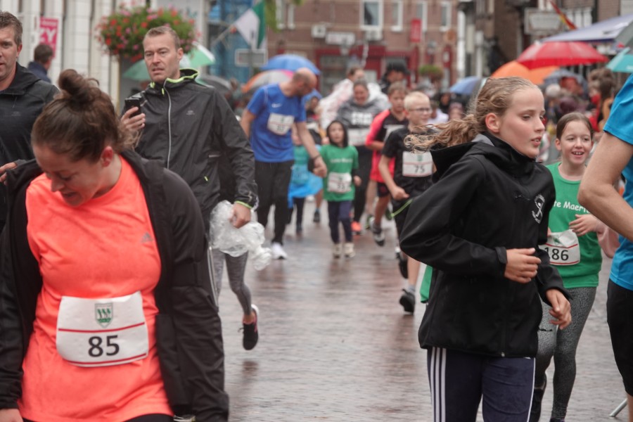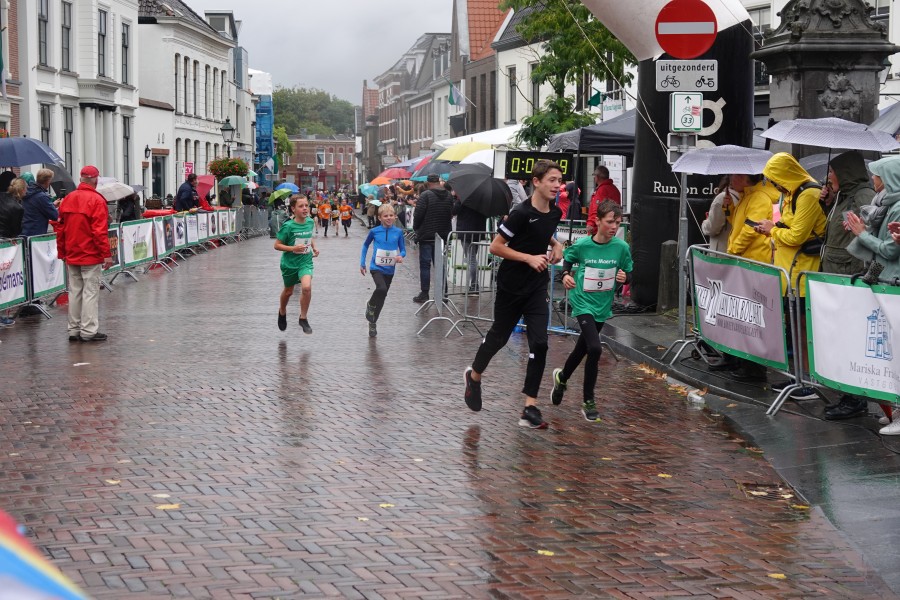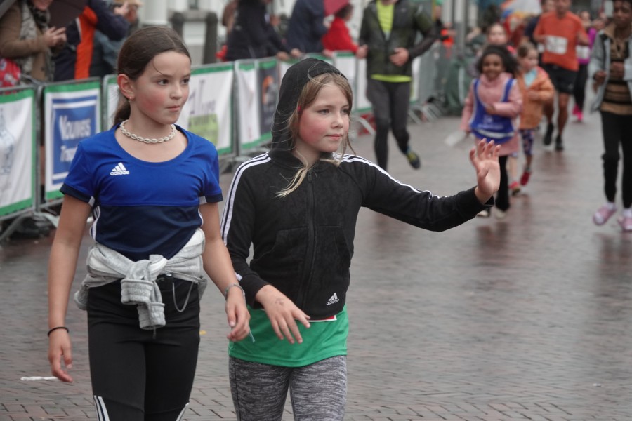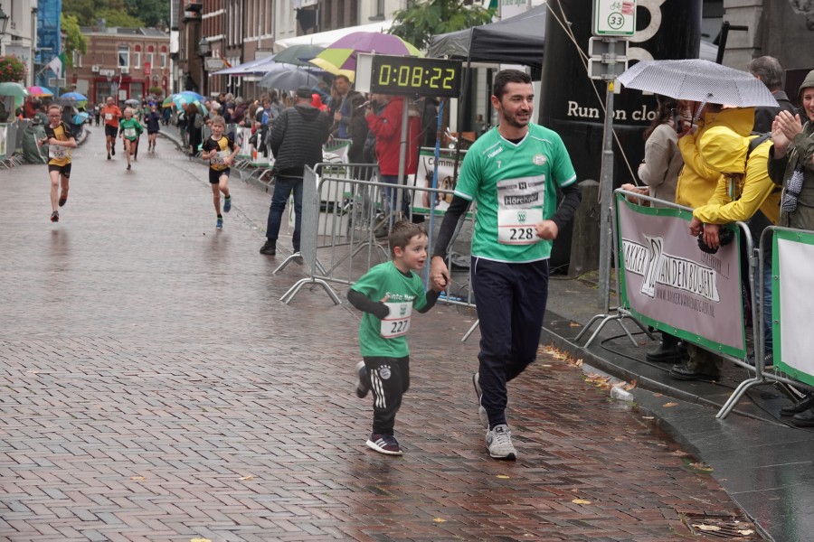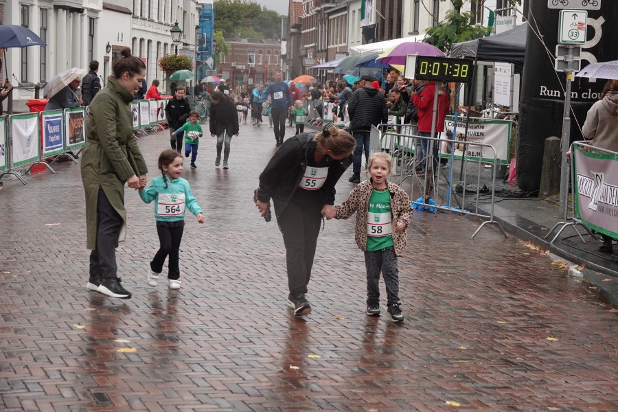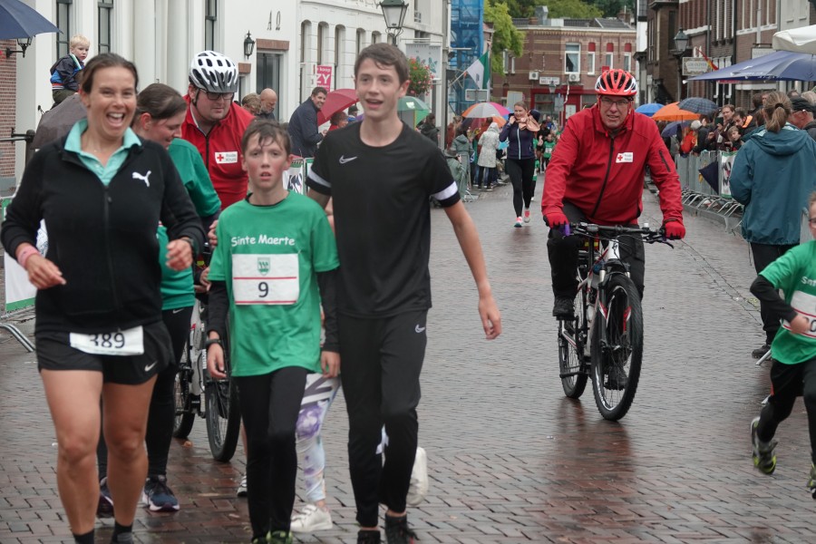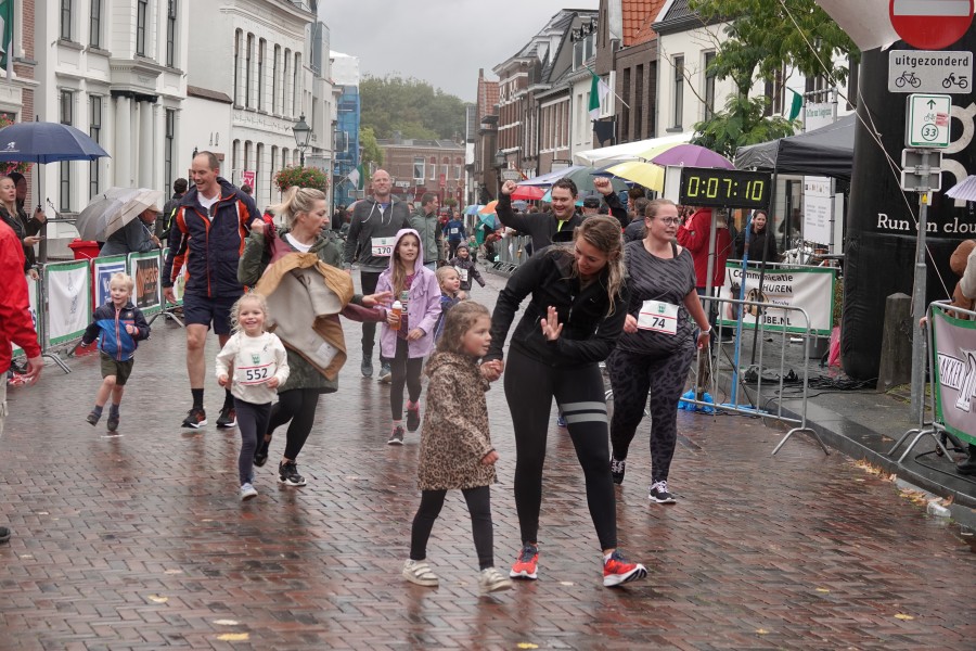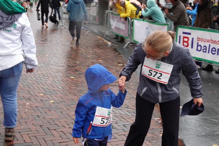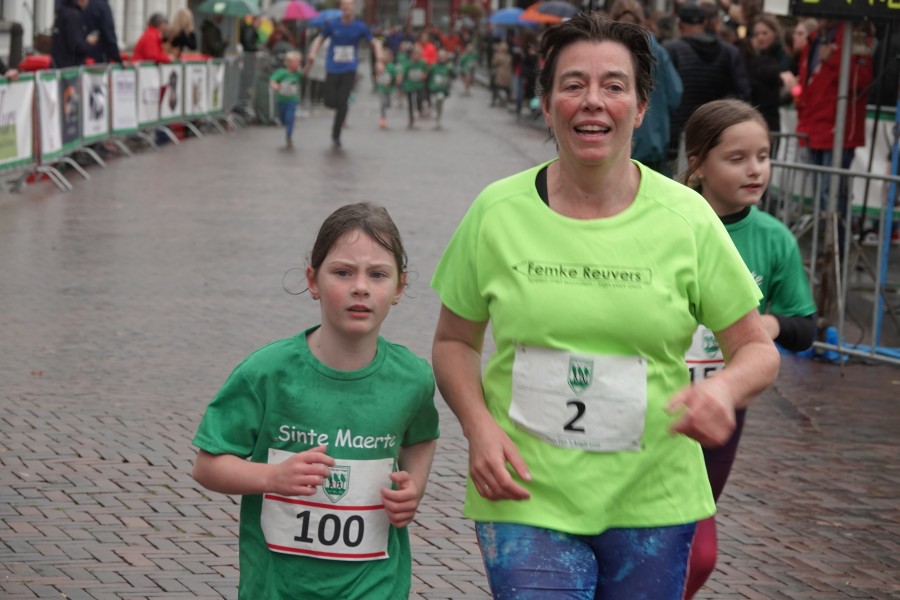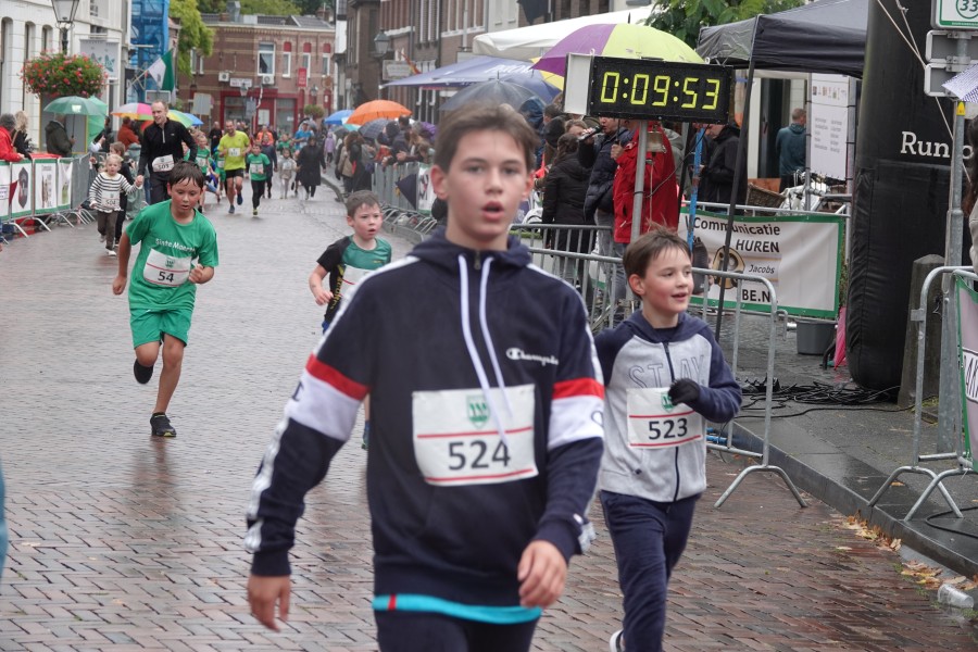 Onder droge omstandigheden begonnen de eerste lopers, alleen de snelsten kwamen droog over, maar de regen kon de pret niet drukken. Menig record sneuvelde en voor anderen was het gewoon een overwinning op jezelf. Zo had ieder zijn eigen motivatie om deel te nemen. Vervolgens ging de tien kilometer van start onder regenachtige omstandigheden. Gelukkig viel de regen mee toen de familieloop startte. Na een goede warming-up ging ook die van start, de ene liep een ronde de fanatiekeling onder ons liepen er zelfs drie. Gelukkig was iedereen voor de grote stortbui binnen.