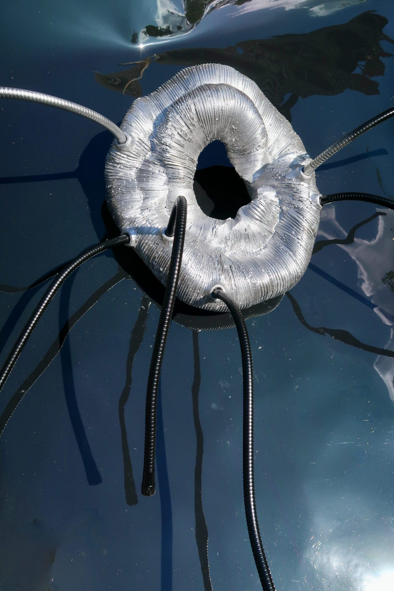Wanneer je een koptelefoon opzet, ontvouwt zich een tweede laag: een muzikale compositie die de tikken opneemt in een wonderlijk geluidslandschap. Wat eerst willekeurig leek, krijgt ineens betekenis: alsof je opeens de taal van het wezen verstaat. Hexapus onderzoekt hoe we communiceren, speelt met de grens tussen organisch en mechanisch en roept een vervreemdend, bijna post-apocalyptisch gevoel op.
