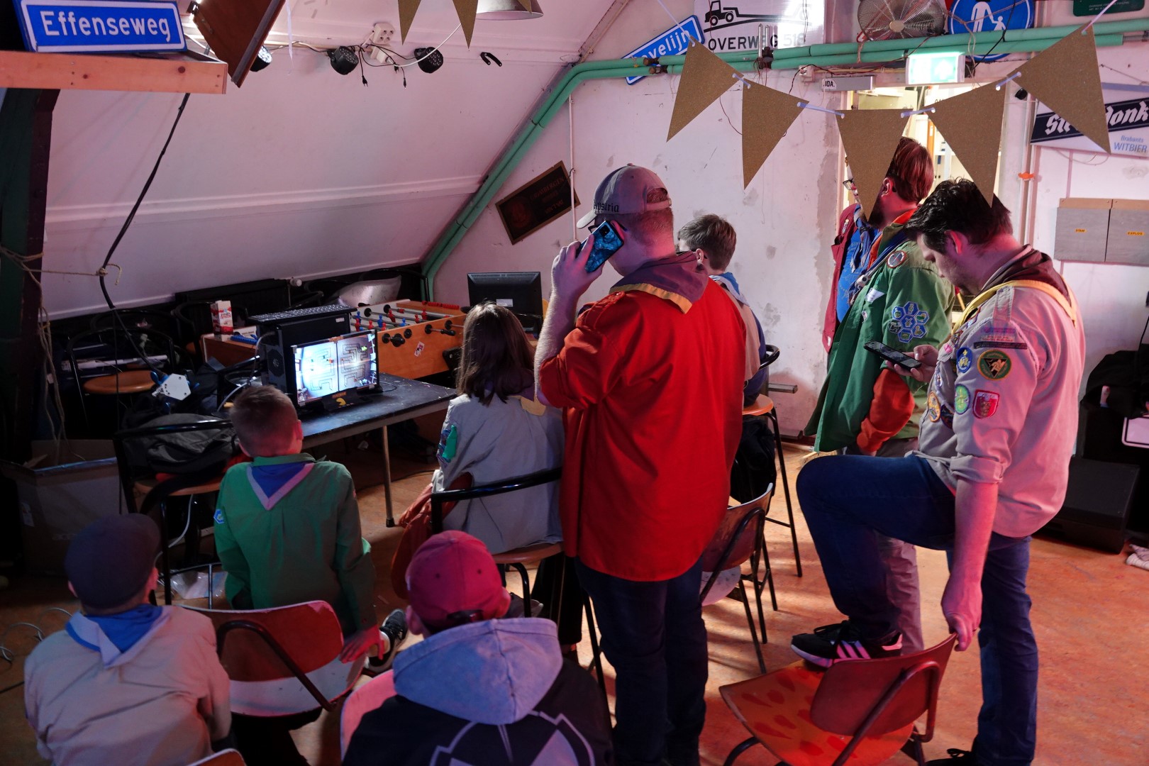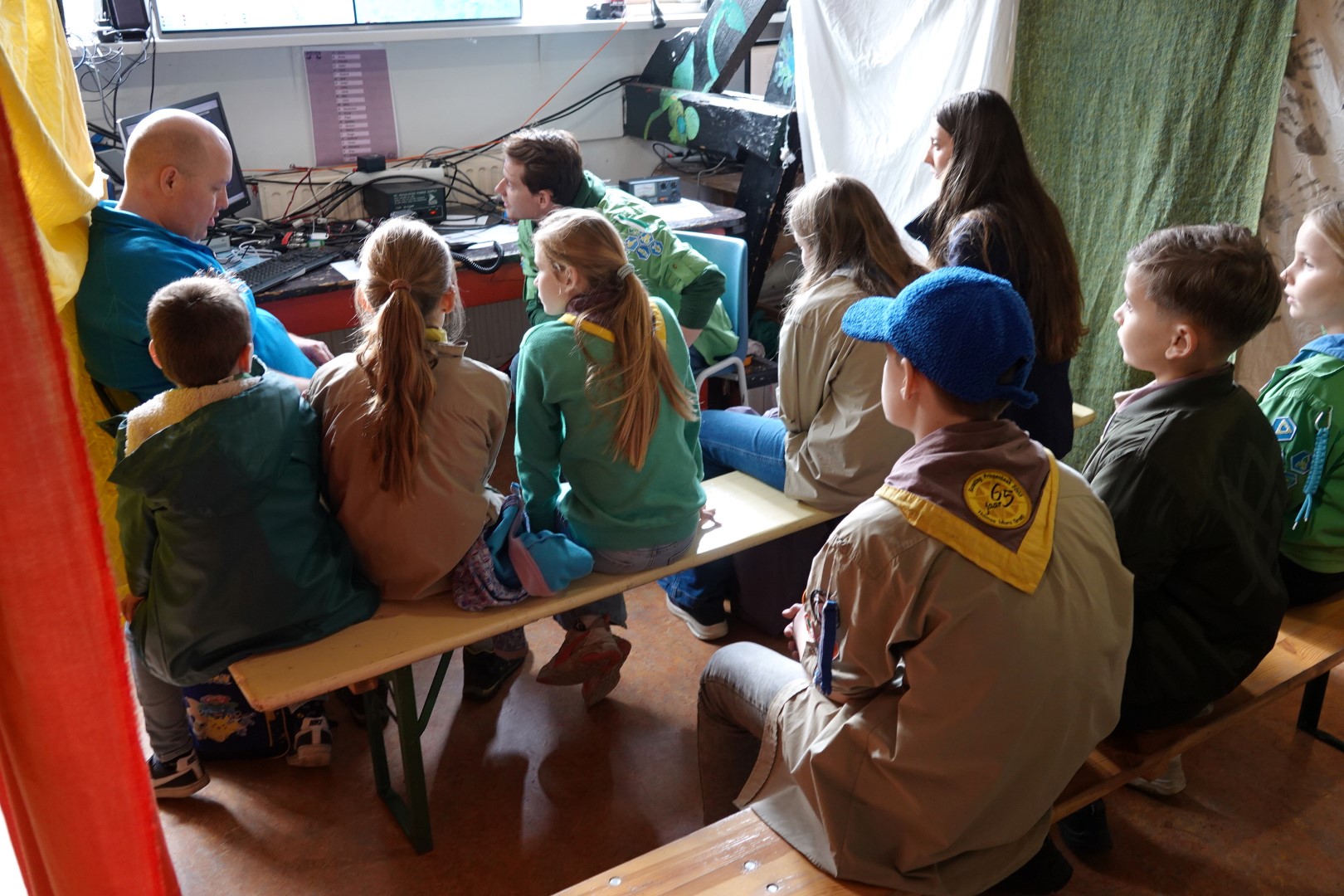 Om dit contact te leggen heeft de scouting de afgelopen weken hard gebouwd aan de zendtoren die aan de achterkant van het gebouw is geplaatst. Deze toren is bijna 20 meter hoog geworden. Maar ook via het internet leggen de kinderen contact door te chatten. Voor veel kinderen is het een spannende ervaring om met een onbekende te praten. Daarom worden de kinderen begeleid door oudere scouts en op weg geholpen over welke (scouting-)onderwerpen er gesproken kan worden. Naast het contact leggen zijn er natuurlijk ook allerlei andere spelletjes te doen dit weekend en de inwendige mens wordt niet vergeten.