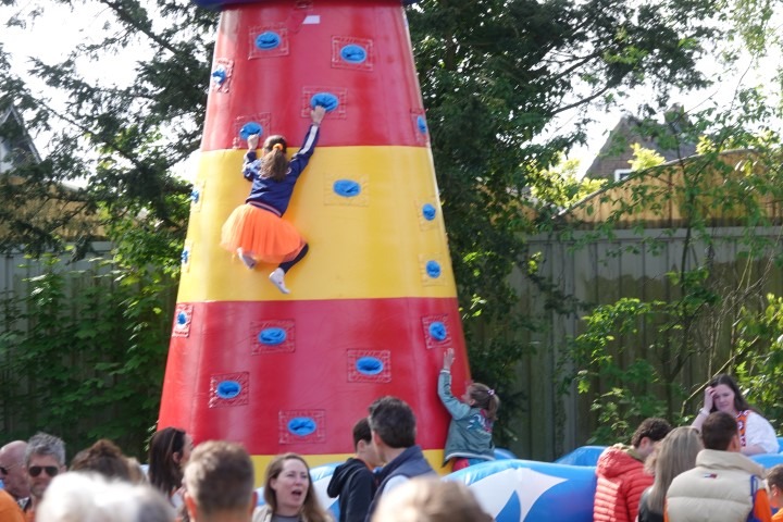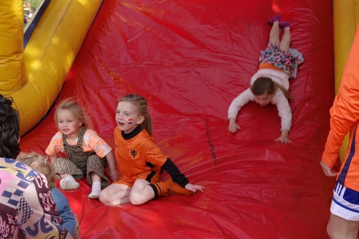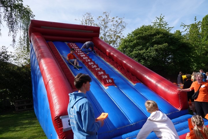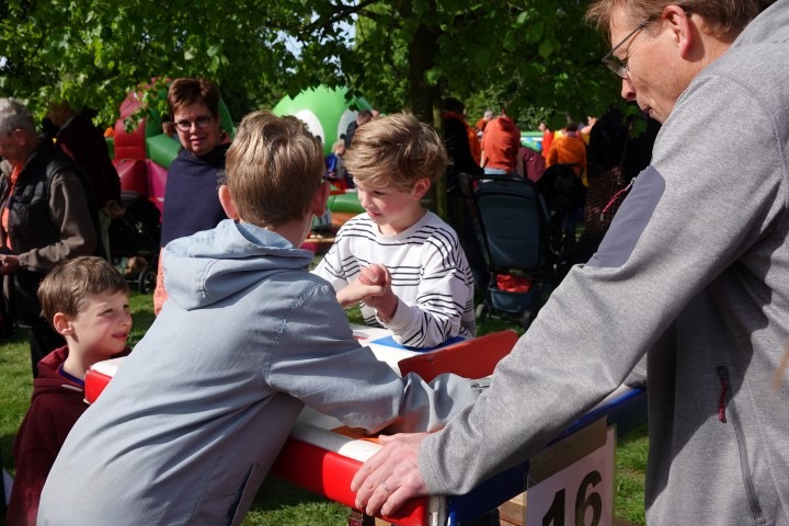 Na het officiële gedeelte was het tijd voor actie. Overal op het veld stonden spelletjes klaar waar de kinderen zich naar hartenlust konden uitleven. Of het nu ging om behendigheid, snelheid of gewoon lekker ravotten; de lach op de gezichten sprak boekdelen. Door het prachtige weer werd het steeds drukker en drukker op de Dorpswei. De opkomst was ook dit jaar weer overweldigend, wat zorgde voor een gezellige drukte en een echt saamhorigheidsgevoel.