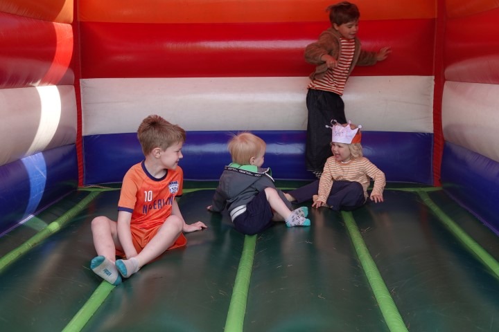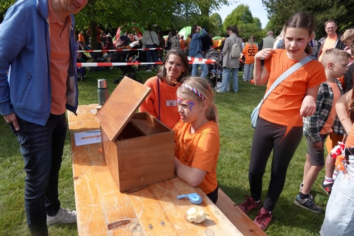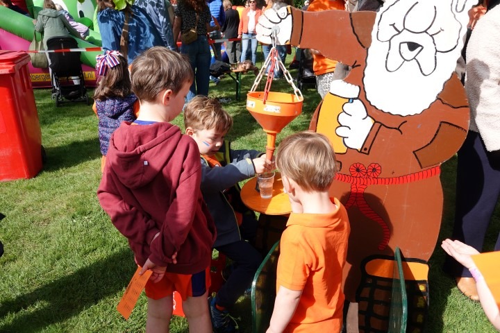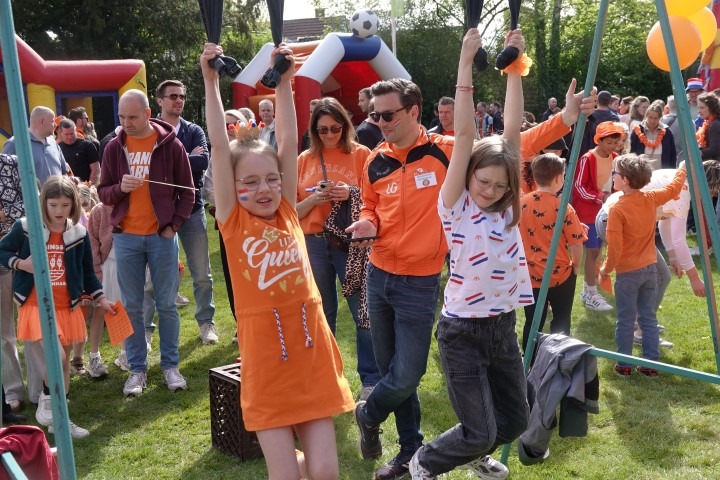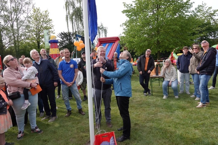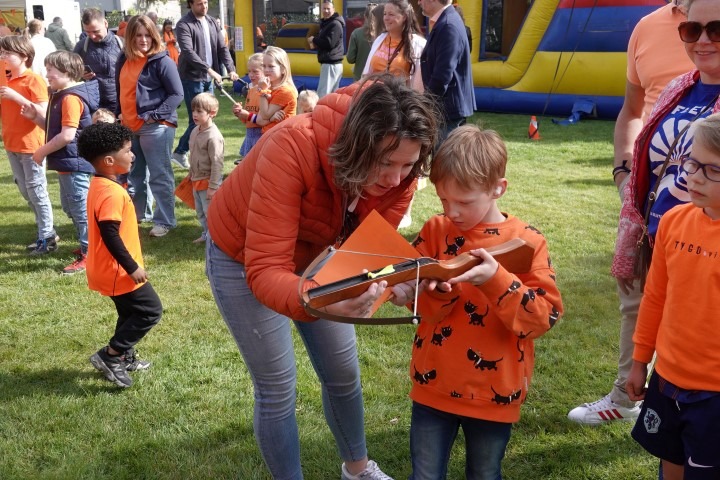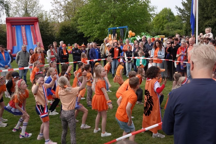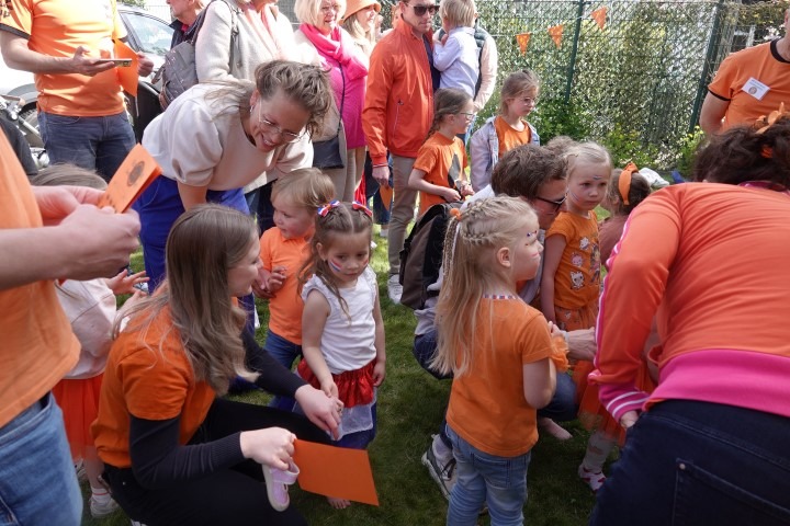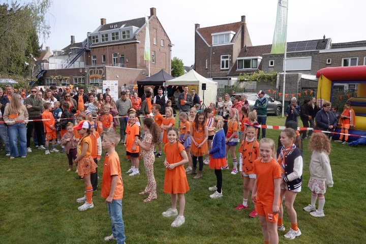 Terwijl de eerste zonnestralen de Dorpswei bereikten, verzamelden kinderen en hun ouders zich voor de officiële opening. De ochtend begon traditioneel met het hijsen van de vlag en het gezamenlijk zingen van het Wilhelmus.