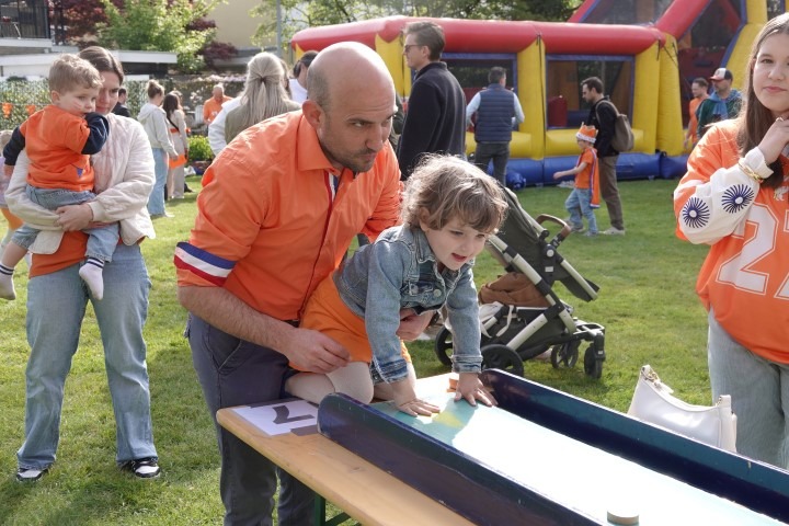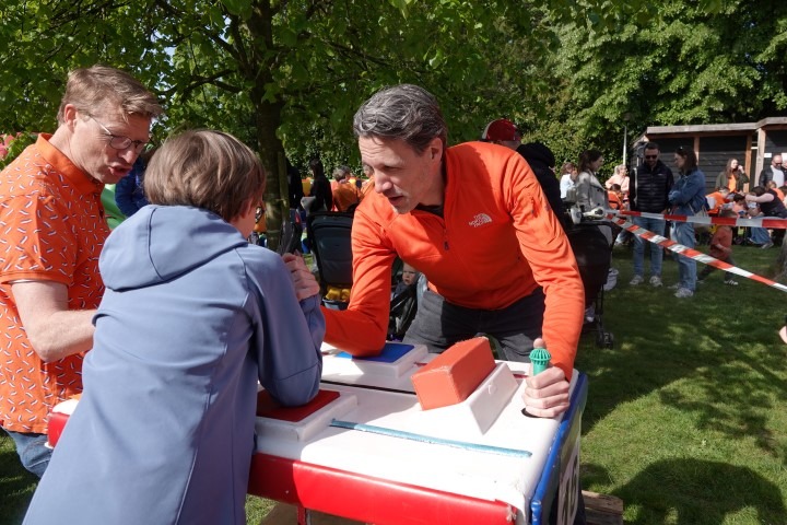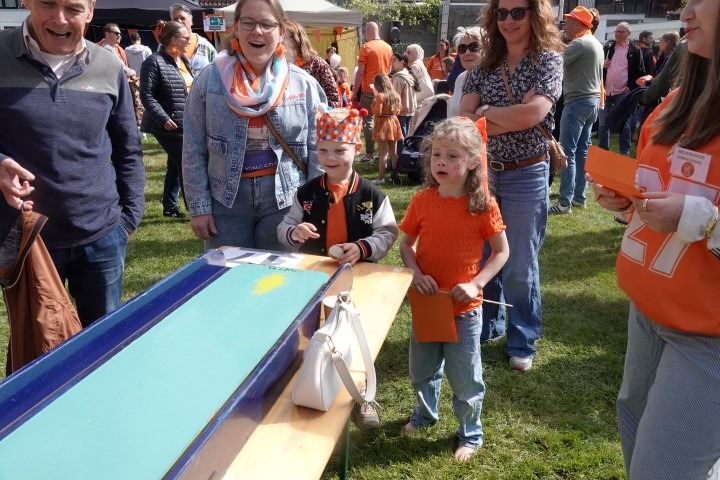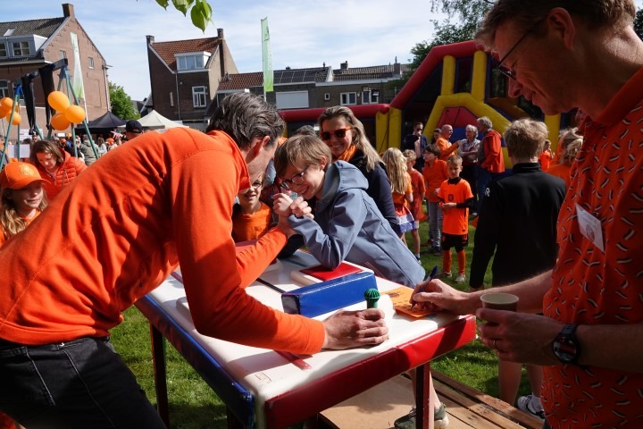 De Dorpswei kleurde vanochtend volledig oranje. Onder een stralende zon trapte Princenhage Koningsdag 2026 af met de traditionele spelletjesochtend. Van het hijsen van de vlag tot fanatieke oud-Hollandse spellen: de sfeer zat er direct goed in.