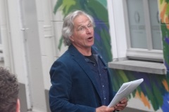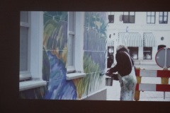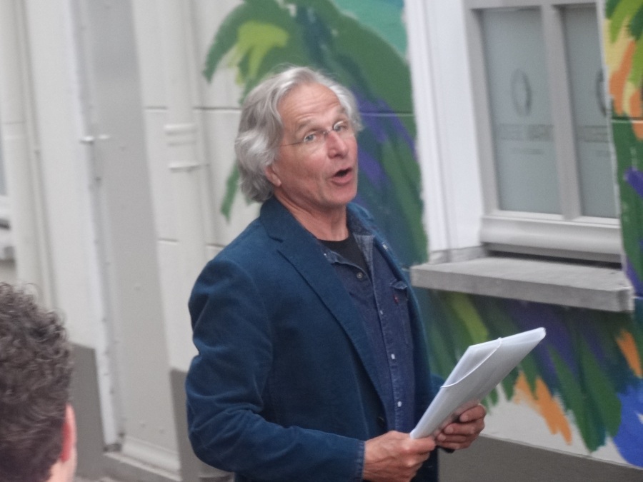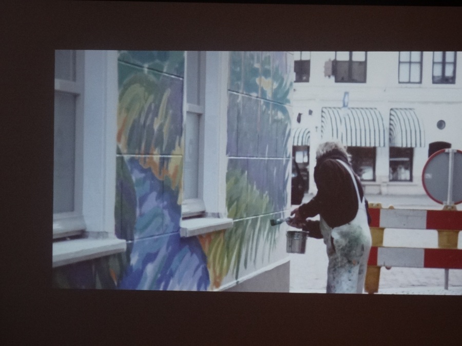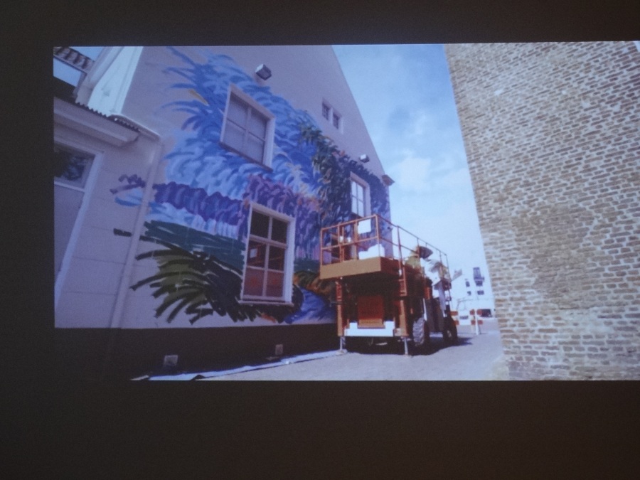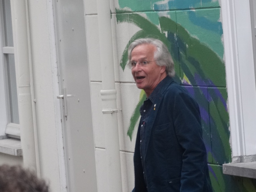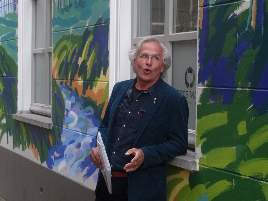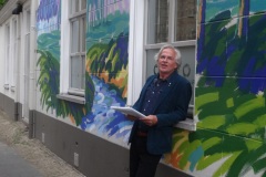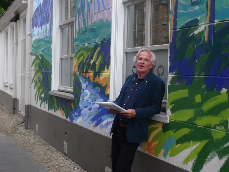Frans van Veen: “Ik heb met veel enthousiasme aan dit project gewerkt. Het was voor mij een uitdaging om de Haagse Dijk op de zijgevel van de Aogse Markt te projecteren. Een werk van 5 bij 10 meter is bepaald geen sinecure, maar het uitwerken was één groot feest. Ik heb veel positieve reacties gekregen en voor degenen die niet zo enthousiast reageerden zou ik zeggen kom eens naar mijn atelier, dan leg ik uit hoe mijn schilderijen tot stand komen en gegarandeerd, je bent zo om!”.