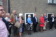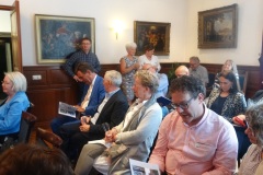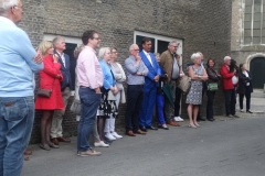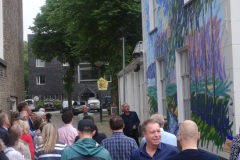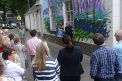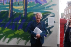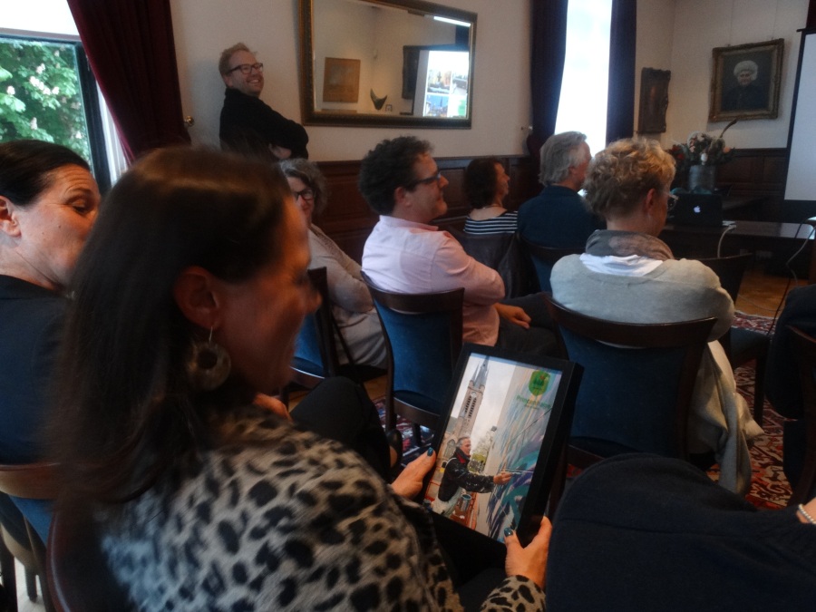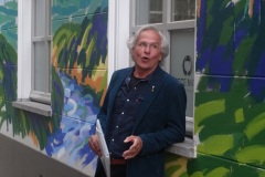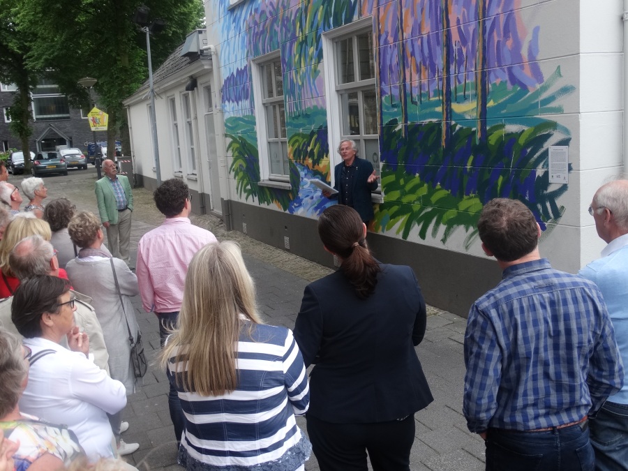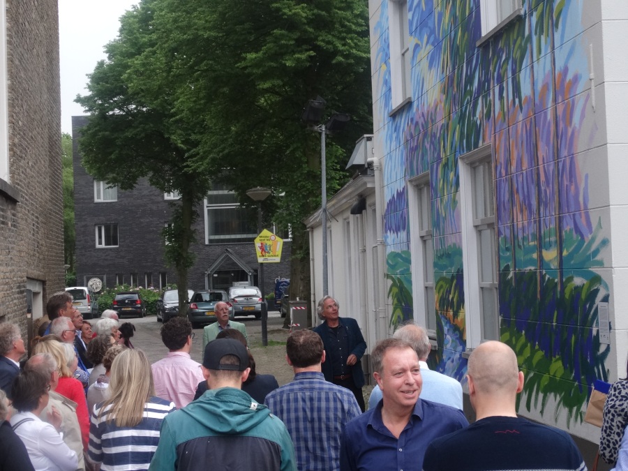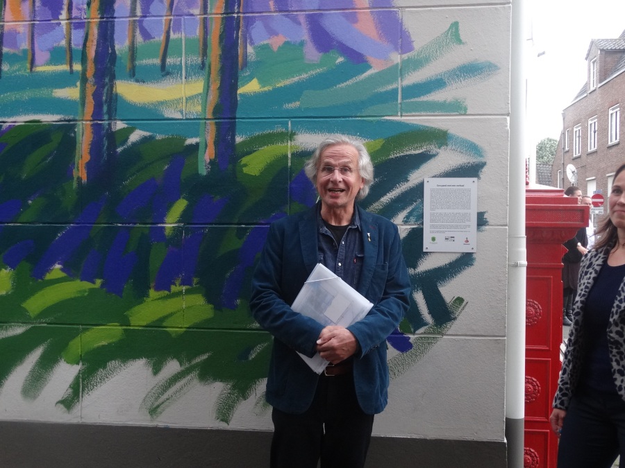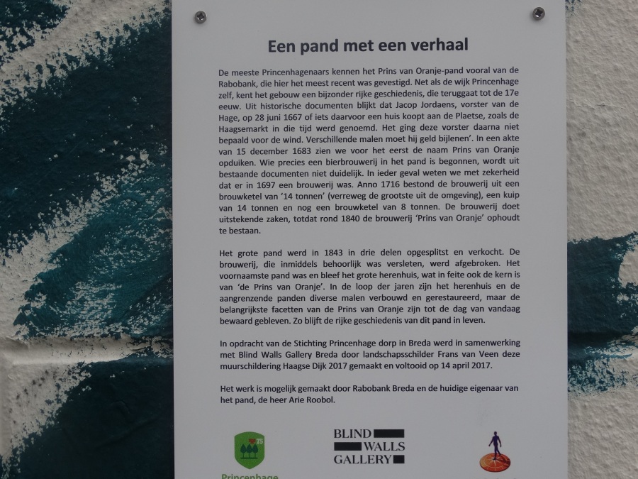 Donderdag 18 mei om 20.15 uur werd de muurschildering van de hand van landschapsschilder Frans van Veen aan de zijgevel van de Aogse Markt ‘overgedragen’, oftewel ‘geschonken’ aan de Princenhaagse bevolking. Tevoren werd aan de genodigden in het voormalige raadhuis door Rini van der Linden, voorzitter van de Stichting 75 jaar dorp in Breda, een toelichting gegeven over dit gebeuren. “Na de grandioze opening van het jaar 2017 bij het traditionele nieuwjaarsconcert, beleefden we afgelopen zondag bij Princenhage in beweging weer een nieuw hoogtepunt. Omdat we als stichting graag wat na laten aan de Princenhaagse bevolking ontstond het idee om aan te haken bij het Bredase initiatief Blind Walls Gallery, die in Breda op diverse plaatsen prachtige –veelal historische- muren door kunstenaars liet beschilderen. In Princenhage werd daarvoor ‘onze’ Frans van Veen benaderd.