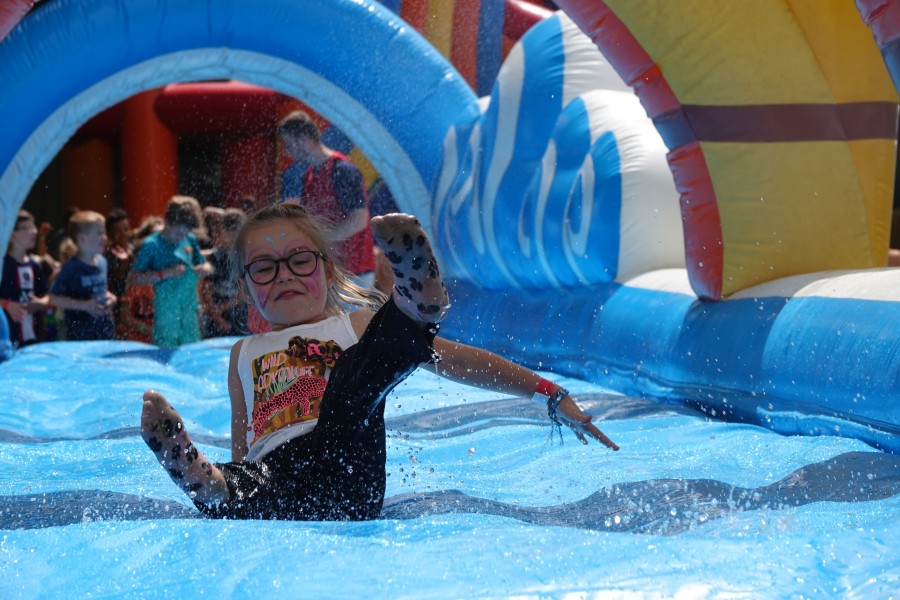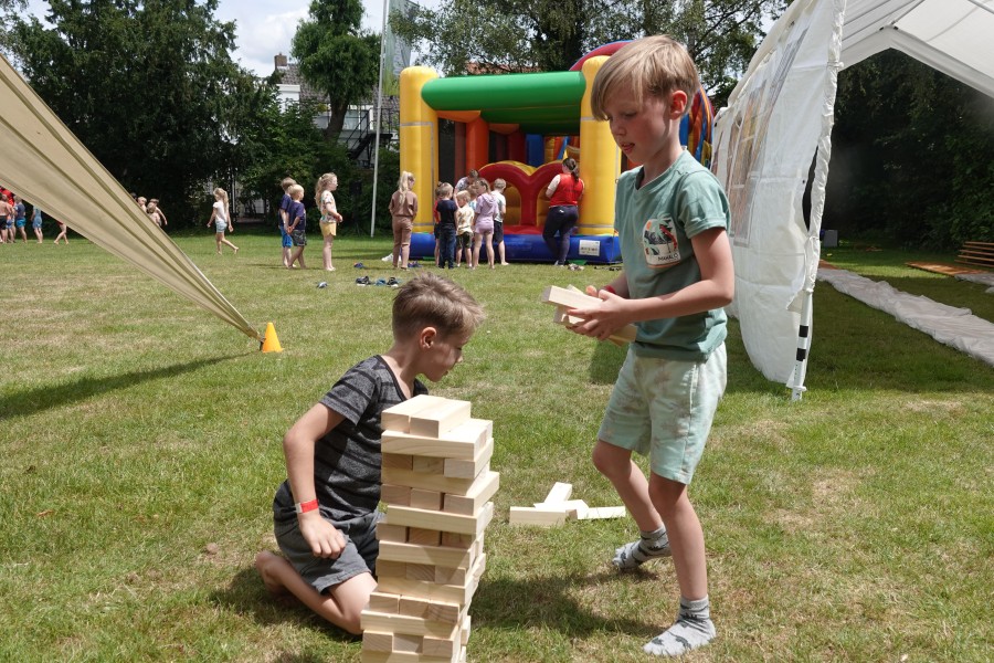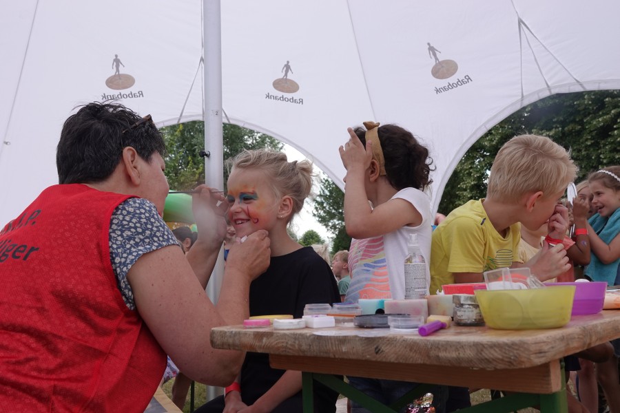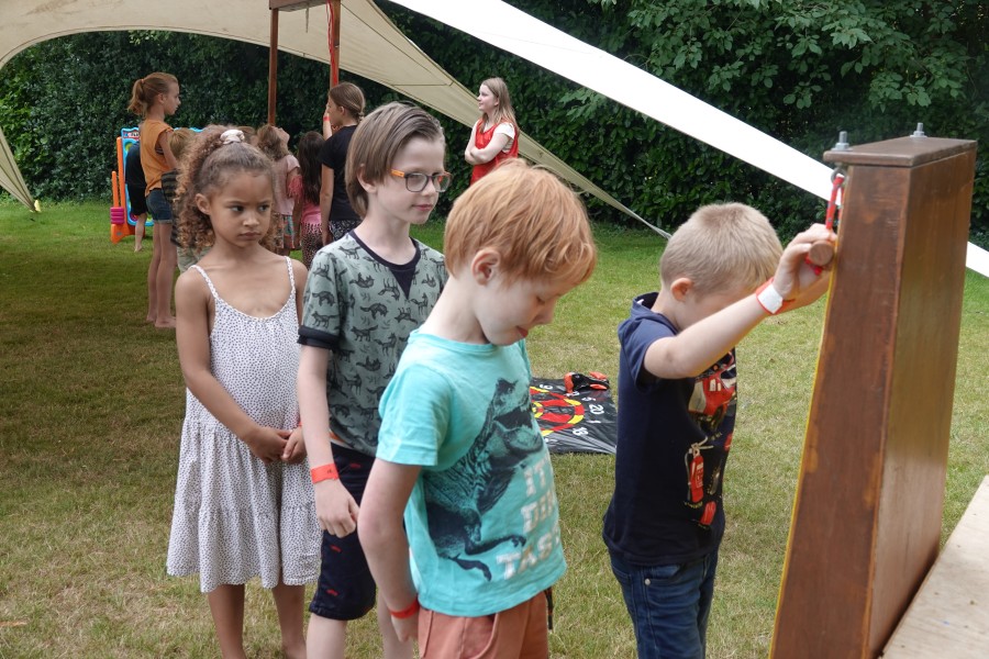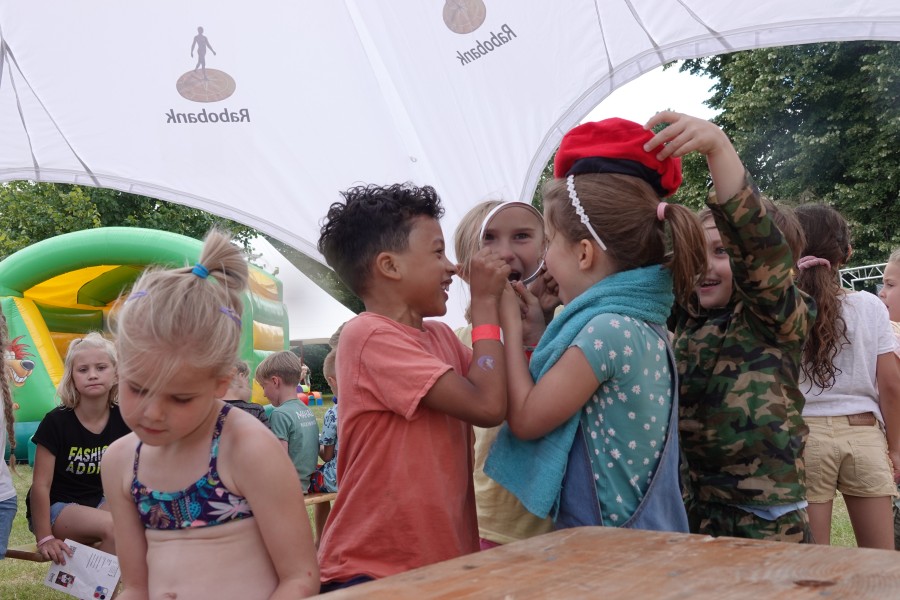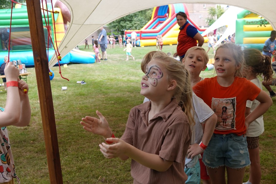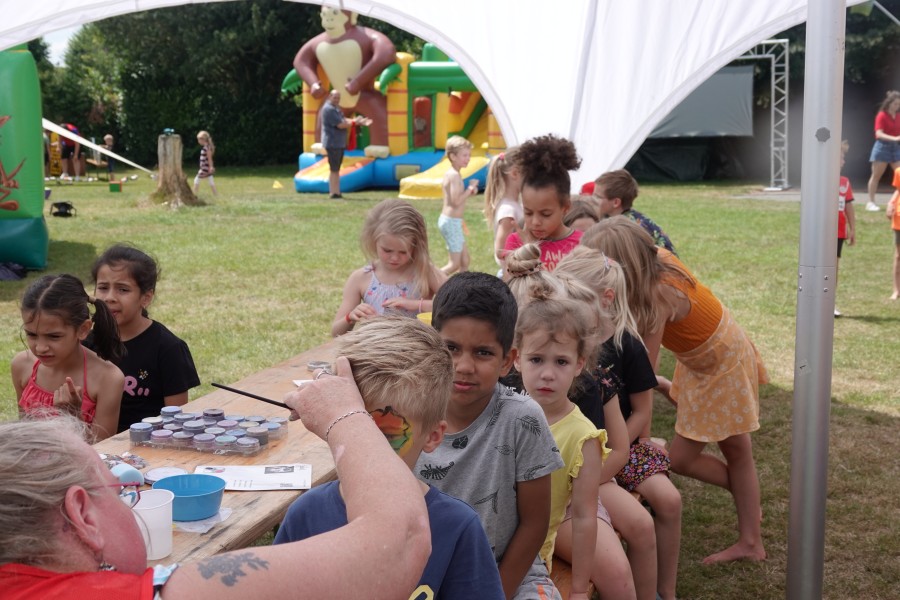 350 kinderen vermaken zich op de Dorpswei bij de S.K.I.P. Spektakeldag.