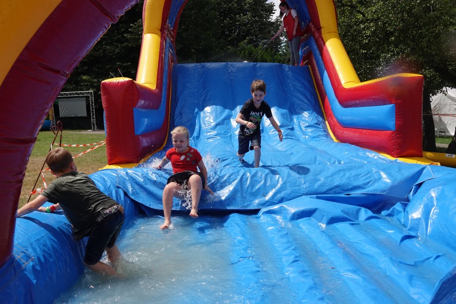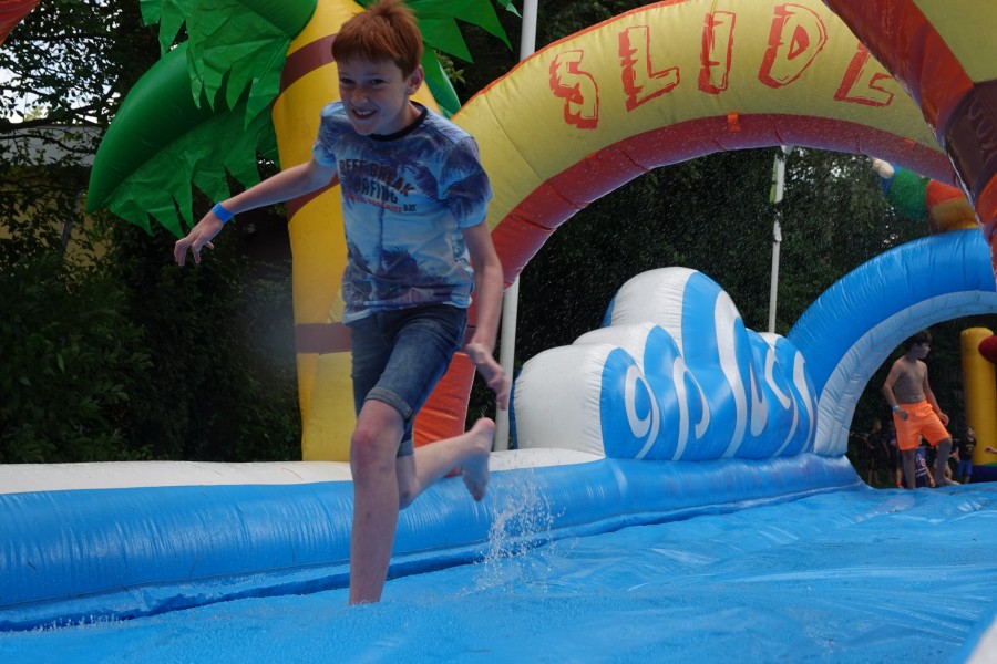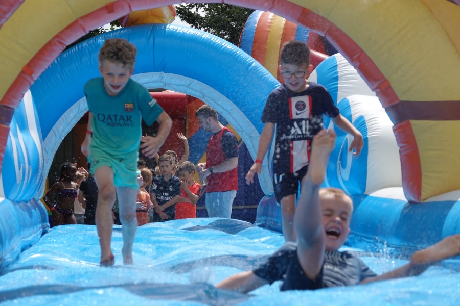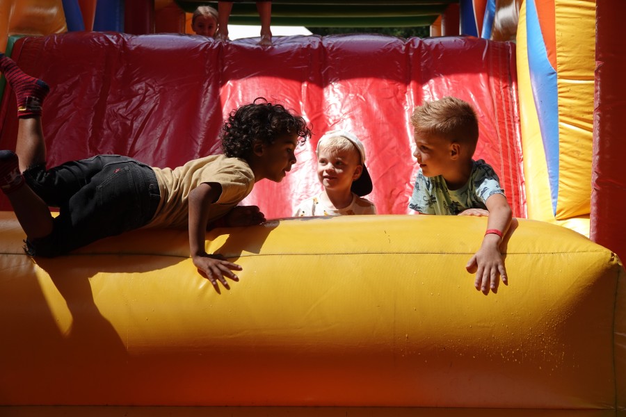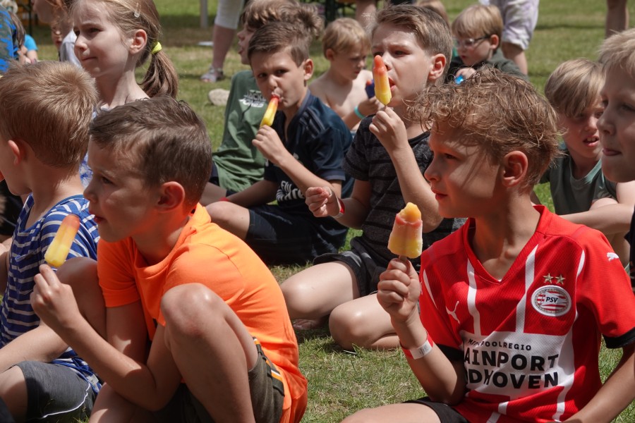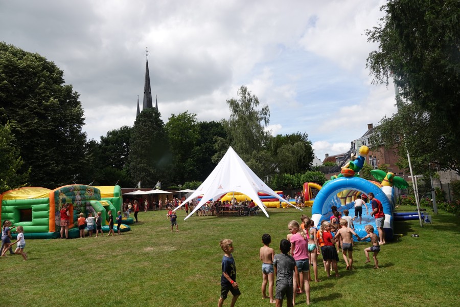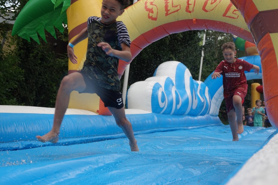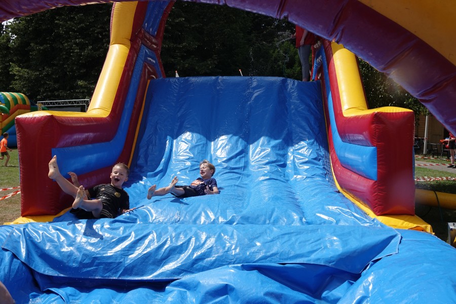 350 kinderen vermaken zich op de Dorpswei bij de S.K.I.P. Spektakeldag.