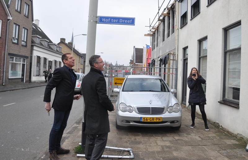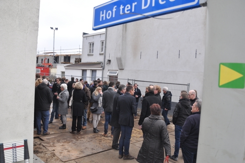 Wethouder Alfred Arbouw heeft vandaag, zaterdag 23 januari de nieuwe straat Hof ter Dreef onthuld. Alle toekomstige bewoners waren uitgenodigd.